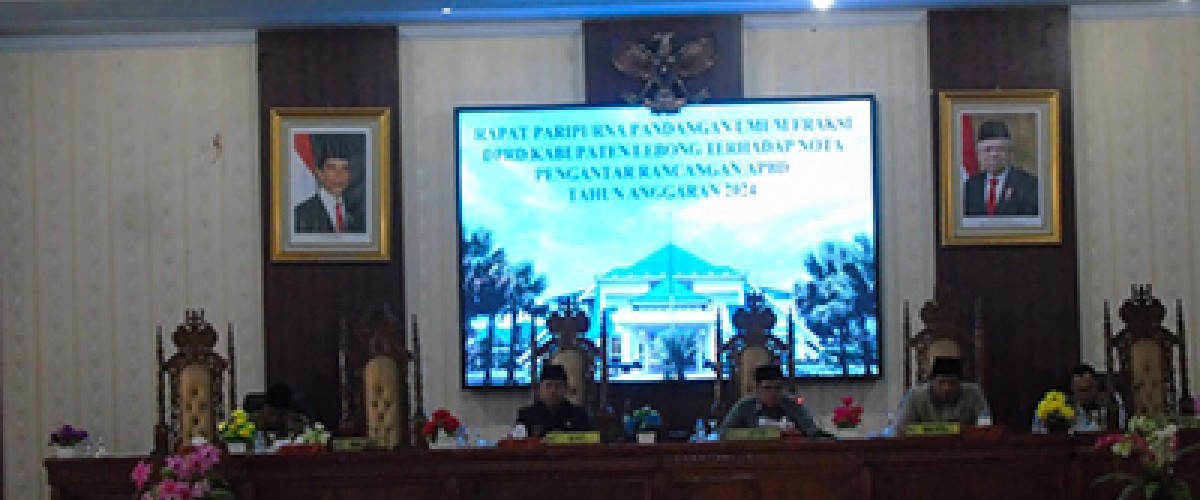 DPRD Kabupaten Lebong menggelar Rapat Paripurna Pandangan Umum Fraksi DPRD Kabupaten Lebong Terhadap Nota Pengantar Rancangan APBD Tahun Anggaran 2024, pada Rapat Paripurna kali ini dibuka oleh Ketua DPRD Carles Rosen, dan didampingi oleh Waka I sedangkan Waka II berhalangan hadir, anggota DPRD Kabupaten Lebong yang hadir lewat laporan pimpinan rapat menyampaikan bahwa melebih dari qourum dan yang tidak hadir memang sudah melayangkan Surat Izin.