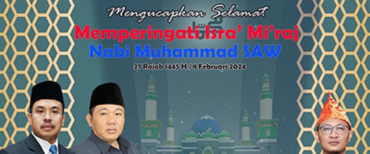 Sekretariat DPRD Kabupaten Lebong mengucapkan Selamat Memperingati Isra' Mi'raj Nabi Muhammad SAW, 27 Rajab 1445 H / 8 Februari 2024.