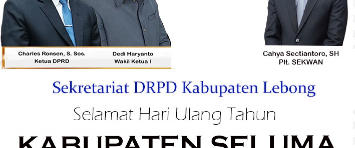 Sekretariat DPRD Kabupaten Lebong mengucapkan Selamat Hari Ulang Tahun Kabupaten Seluma ke -21 Tahun 2004. “ Majulah Seluma Ku Untuk Indonesia Maju“