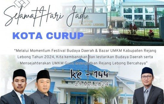 Sekretariat DPRD Kabupaten Lebong mengucapkan Selamat Hari Jadi Kota Curup ke - 144. “Melalui Momentum Festival Budaya Daerah & Bazar UMKM Kabupaten Rejang Lebong Tahun 2024, Kita kemba