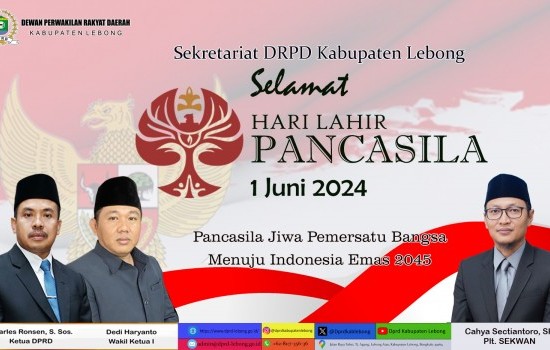 Sekretariat DPRD Kabupaten Lebong Mengucapkan Selamat Hari Lahir Pancasila 1 Juni 2024. "Pancasila Jiwa Pemersatu Bangsa Menuju Indonesia Emas 2045"