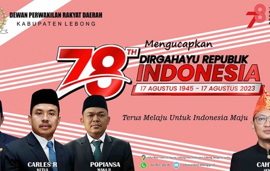 Dewan Perwakilan Rakyat Daerah Kabupaten Lebong dan Sekretariat mengucapkan Dirgahayu Republik Indonesia ke 78 Tahun 2023, "Terus Melaju Untuk Indonesia Maju".