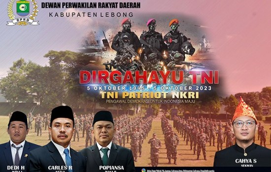 Sekretariat DPRD Kabupten Lebong mengucapkan Dirgahayu TNI ke 78, 5 Oktober 2023. NI Patriot NKRI. Pengawal Demokrasi Untuk Indonesia Maju.