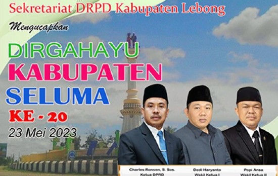 Sekretariat DPRD Kabupaten Lebong mengucapkan Selamat HUT Kabupaten Seluma ke - 20 Tanggal 23 Mei 2023.
