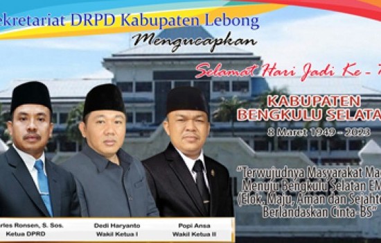 Sekretariat DPRD Kabupaten Lebong Mengucapkan Selamat dan Sukses Hari Jadi Kabupaten Bengkulu Selatan Yang ke 74 "Repost"
